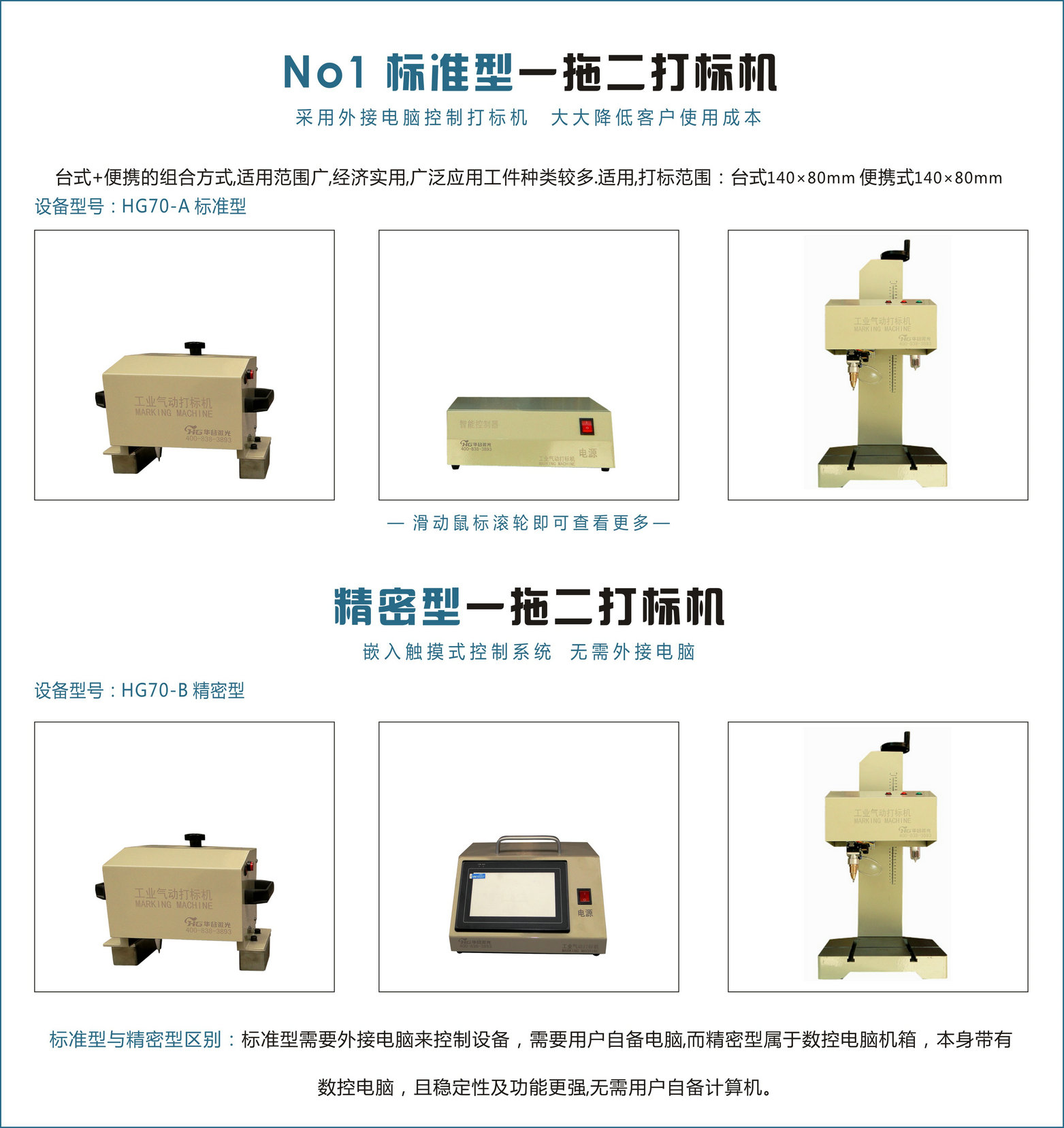 標(biāo)準(zhǔn)型與精密型區(qū)別:HG70A標(biāo)準(zhǔn)型需要外接電腦來控制機(jī)器,而HG70B精密型屬于數(shù)控機(jī)箱,本身帶有數(shù)控電腦,且無需外接計(jì)算機(jī)。
