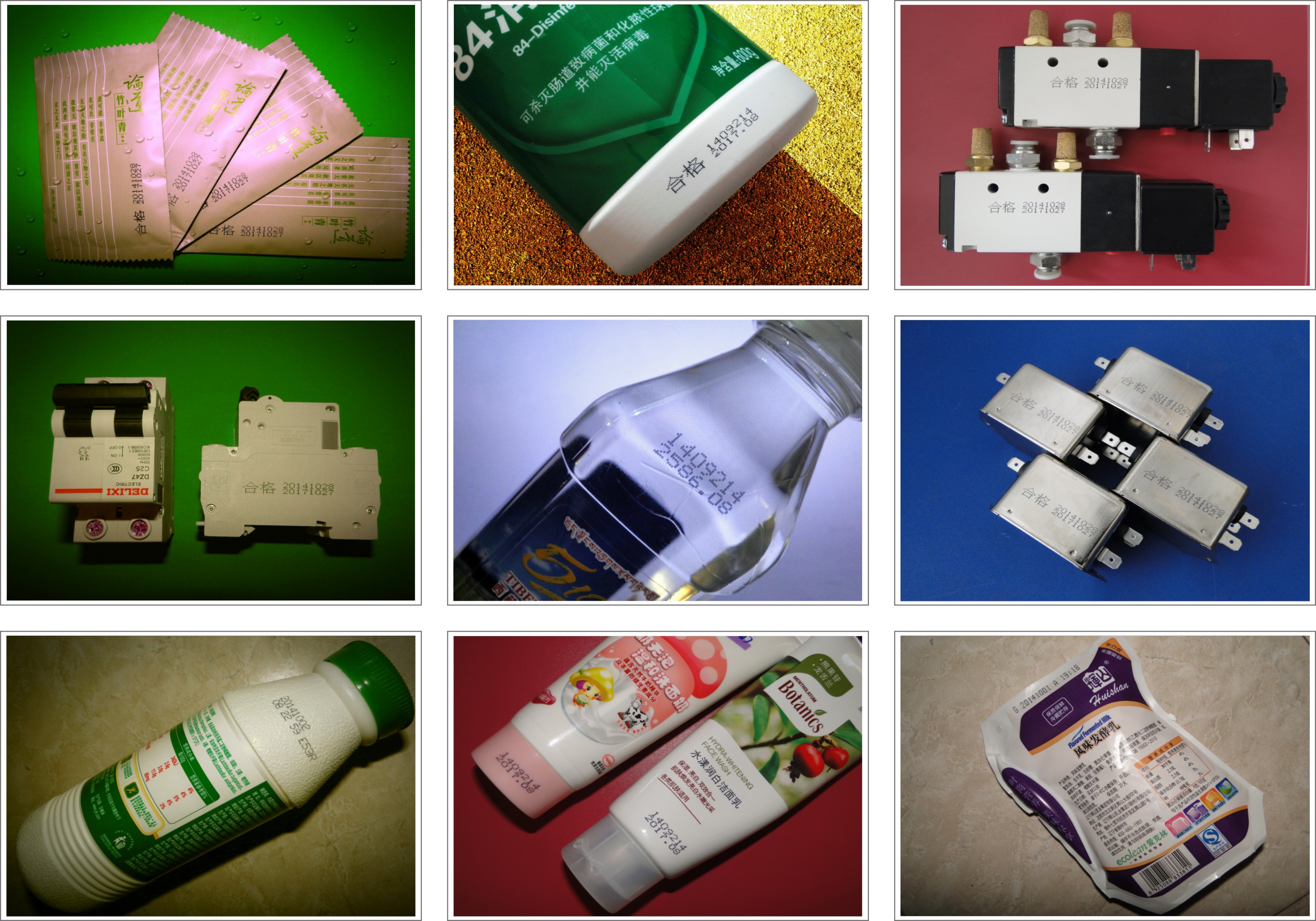 噴印材質(zhì):金屬、塑料、木材、鋁箔、紙箱及建材等材質(zhì)表面.