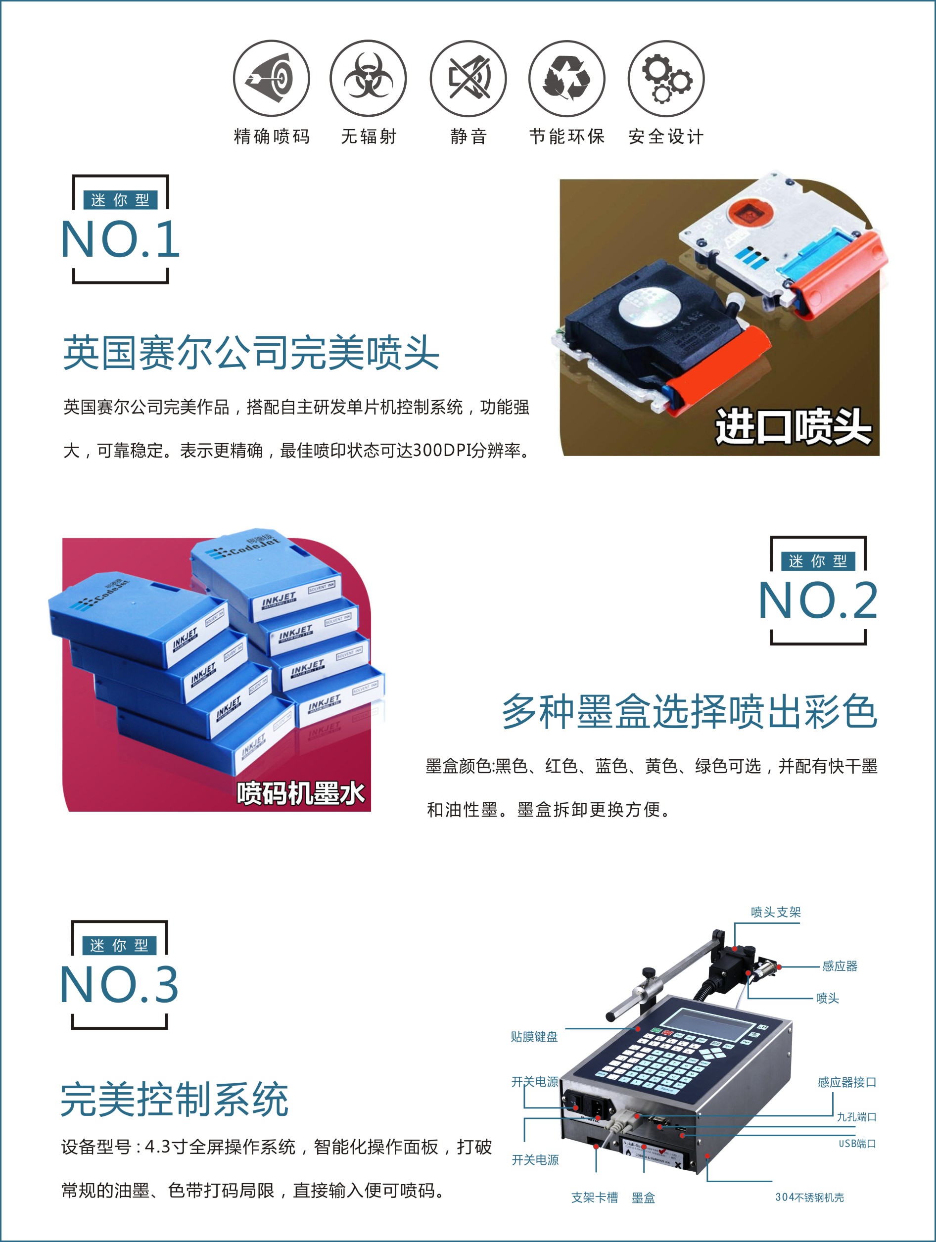 外部接口:快干環(huán)保油墨或油性油墨,無需外接氣源及稀釋劑.