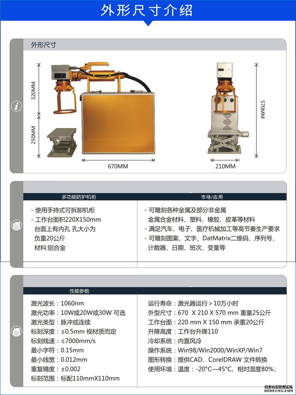 外型尺寸:臺式一體機柜670 mm X 210 mm X 570 mm長寬高