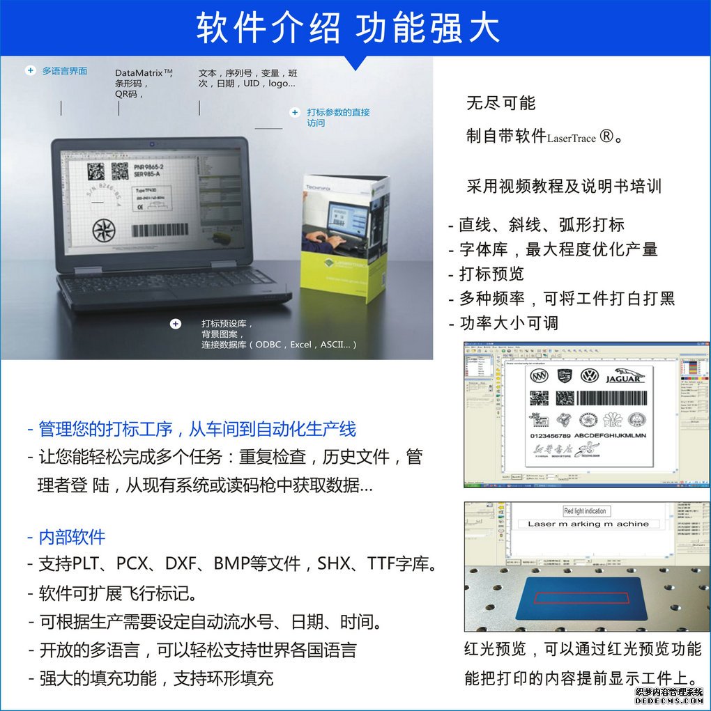 6.軟件可擴展飛行標記系統(tǒng)。提供百種自動打標和送料方案。